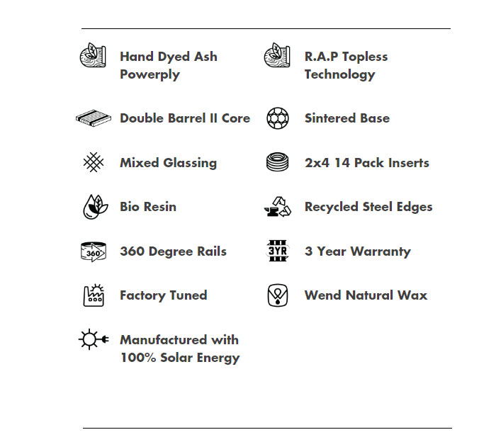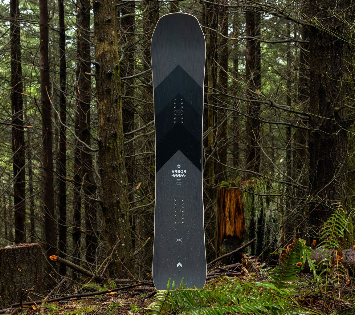 The ride it all, big mountain twin Coda supports high speeds, big landings, comfortable cruisers, and deep snow. A necessary addition to any all-mountain quiver. This year's Coda features Arbor's R.A.P Rise Above Plastic top to shed snow, and weight, and decrease waste through an evolved building process. Available in both System Camber and System Rocker.