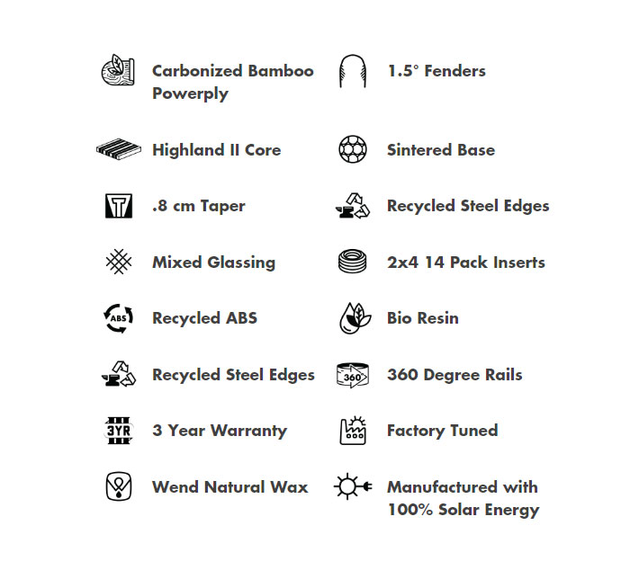 The ride it all, big mountain twin Coda supports high speeds, big landings, comfortable cruisers, and deep snow. A necessary addition to any all-mountain quiver. This year's Coda features Arbor's R.A.P Rise Above Plastic top to shed snow, and weight, and decrease waste through an evolved building process. Available in both System Camber and System Rocker.