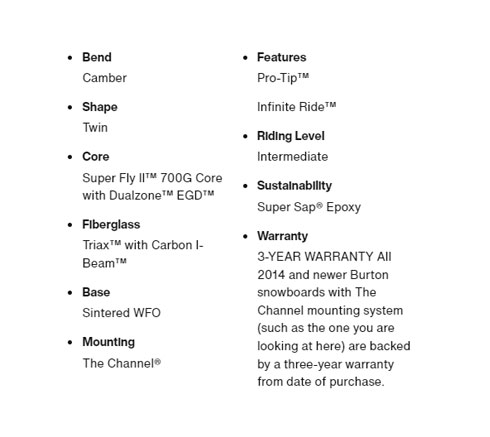 Twin Shape and flex are perfectly symmetrical for a balanced ride that lets you spin and stomp as you like, regular or switch.