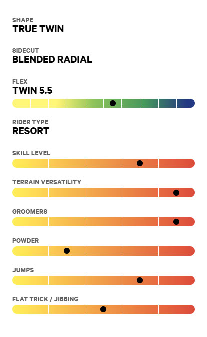 With a medium flex that's easy to turn, this hybrid-camber, all-terrain performer has inspired countless knockoffs chasing its success. The Birds of a Feather breaks down industry barriers with a comprehensive size range, including an expanded dedicated wide offering for women with larger boot sizes.